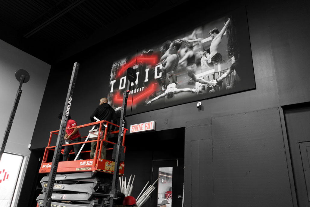 Il y a quelques mois, Photofocus, Xpozer et moi-même nous sommes associés pour un projet ambitieux. Nous voulions créer un très – TRÈS – grand tirage multi-panneaux pour l’un de mes clients, le Tonic CrossFit. Après avoir discuté de différentes possibilités avec le propriétaire Gabriel, nous avons décidé de créer un photomontage qui allait être imprimé sur six panneaux de 40x80po. Ce montage représenterait la communauté du gym tout en rehaussant la nouvelle décoration de la salle.